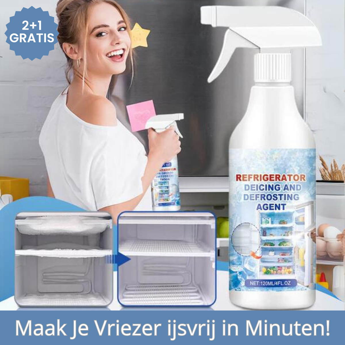 "Geen gedoe meer met ontdooien! Eén keer sprayen en het ijs smelt gewoon weg – ideaal voor vriezer en autoruit."