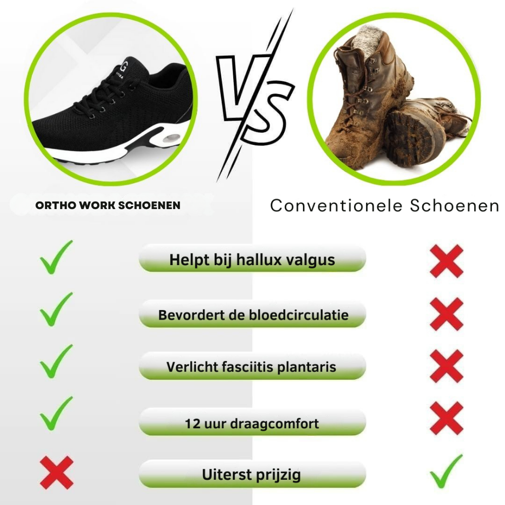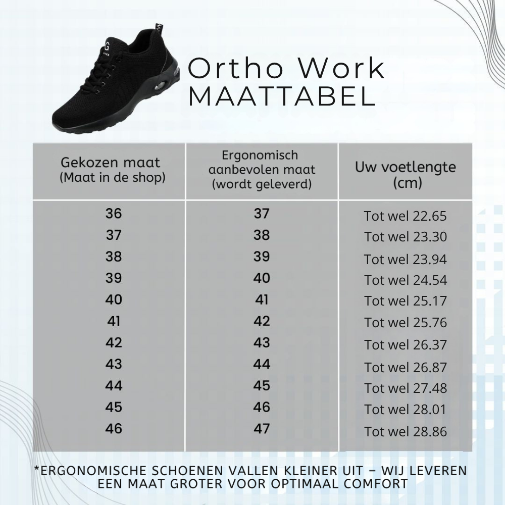 Ervaar comfort zoals nooit tevoren met onze Ortho Work-schoenen! Trek ze aan en je bent klaar voor elke zware klus.