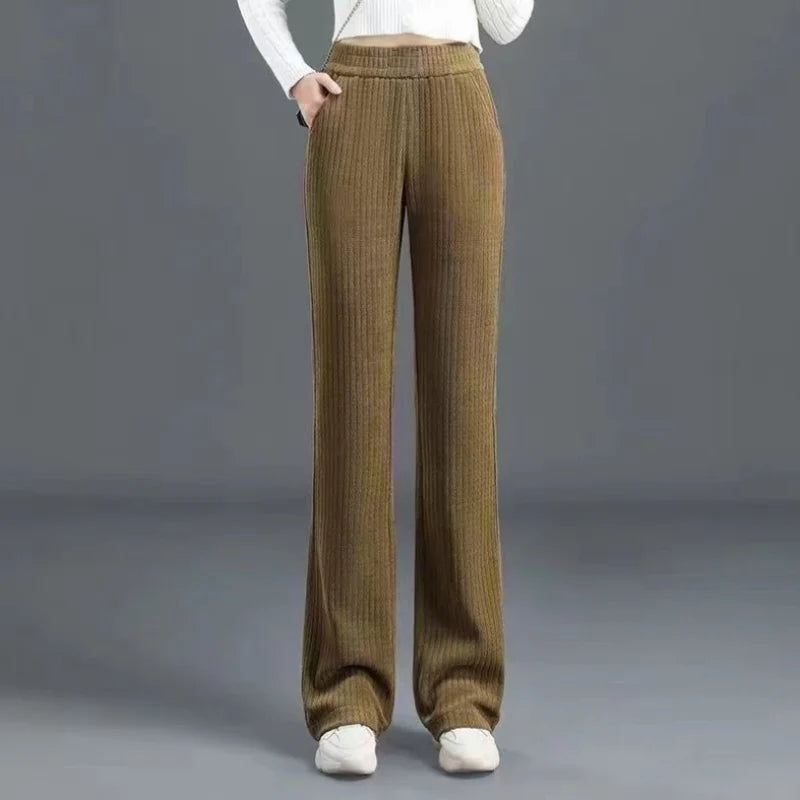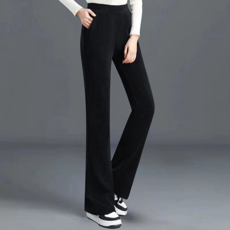 De Mila Flare Broek zijn ontworpen voor wie comfort belangrijk vindt, maar er ook goed uit wil zien. Dankzij de zachte ribstructuur, stretch en hoge taille combineer je moeiteloos gemak met stijl – of je nu thuis bent, op pad gaat of naar kantoor moet.
