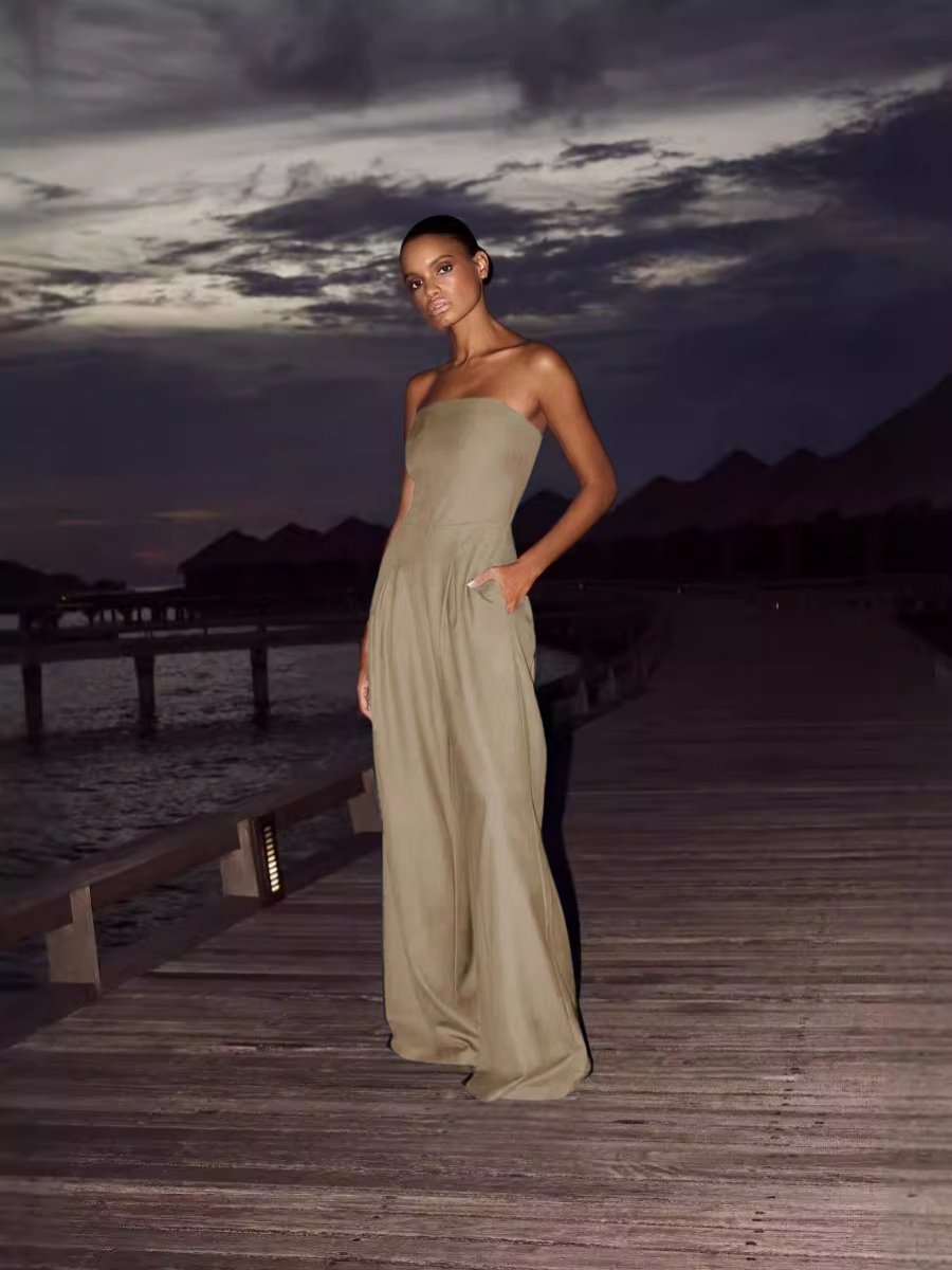 De Mila – Jumpsuit is jouw go-to outfit voor zonnige dagen, stranddiners en feestelijke avonden. Deze strapless jumpsuit benadrukt je silhouet zonder strak te zitten en geeft elke look een stijlvolle flair. Met de losvallende broekspijpen en elegante snit voel je je vrouwelijk én comfortabel tegelijk.