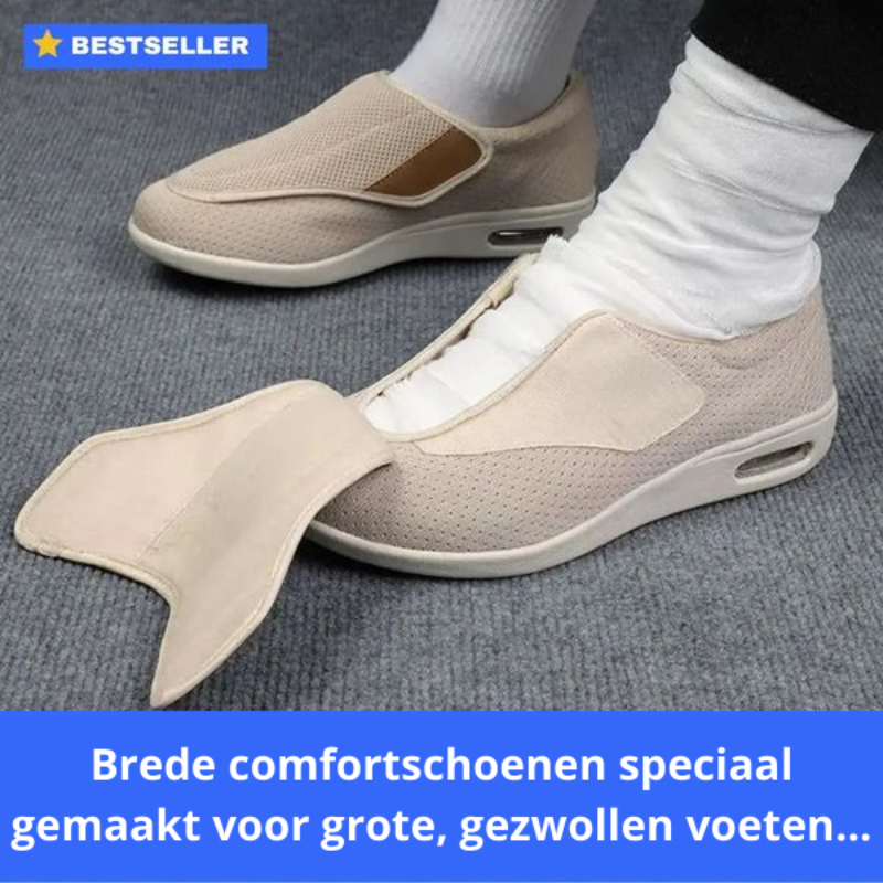 De Brede Comfortschoenen is speciaal ontworpen voor mensen met gezwollen, pijnlijke of gevoelige voeten. Of je nu lijdt aan oedeem, diabetes, artritis of herstellende bent van een operatie, deze schoenen bieden de ondersteuning en het comfort dat je nodig hebt. De Adaptive Fit-technologie zorgt ervoor dat de schoen zich aanpast aan de vorm van je voet, waardoor drukpunten worden verminderd en je voeten de ruimte krijgen die ze verdienen